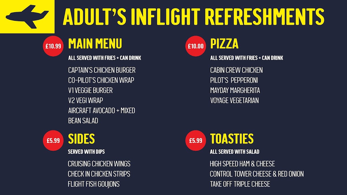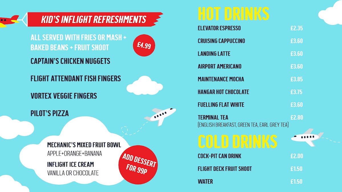 Why not indulge in a delightful meal while your little ones play? The menu features an array of delicious offerings sure to please even the pickiest eaters. For lunch, treat the family to the Captain's Chicken Burger or perhaps the hearty CoPilot's Chicken Wrap. Vegetarian options abound as well, with choices like the flavorful V2 Vegi Wrap and the V1 Veggie Burger that are sure to satisfy. If the kids are craving pizza, the Pilot's Pepperoni or Mayday Margherita are perfect picks for a tasty meal anytime. And for a lighter option, the Aircraft Avocado + Mixed Bean Salad offers a refreshing crunch that complements the fun-filled atmosphere.